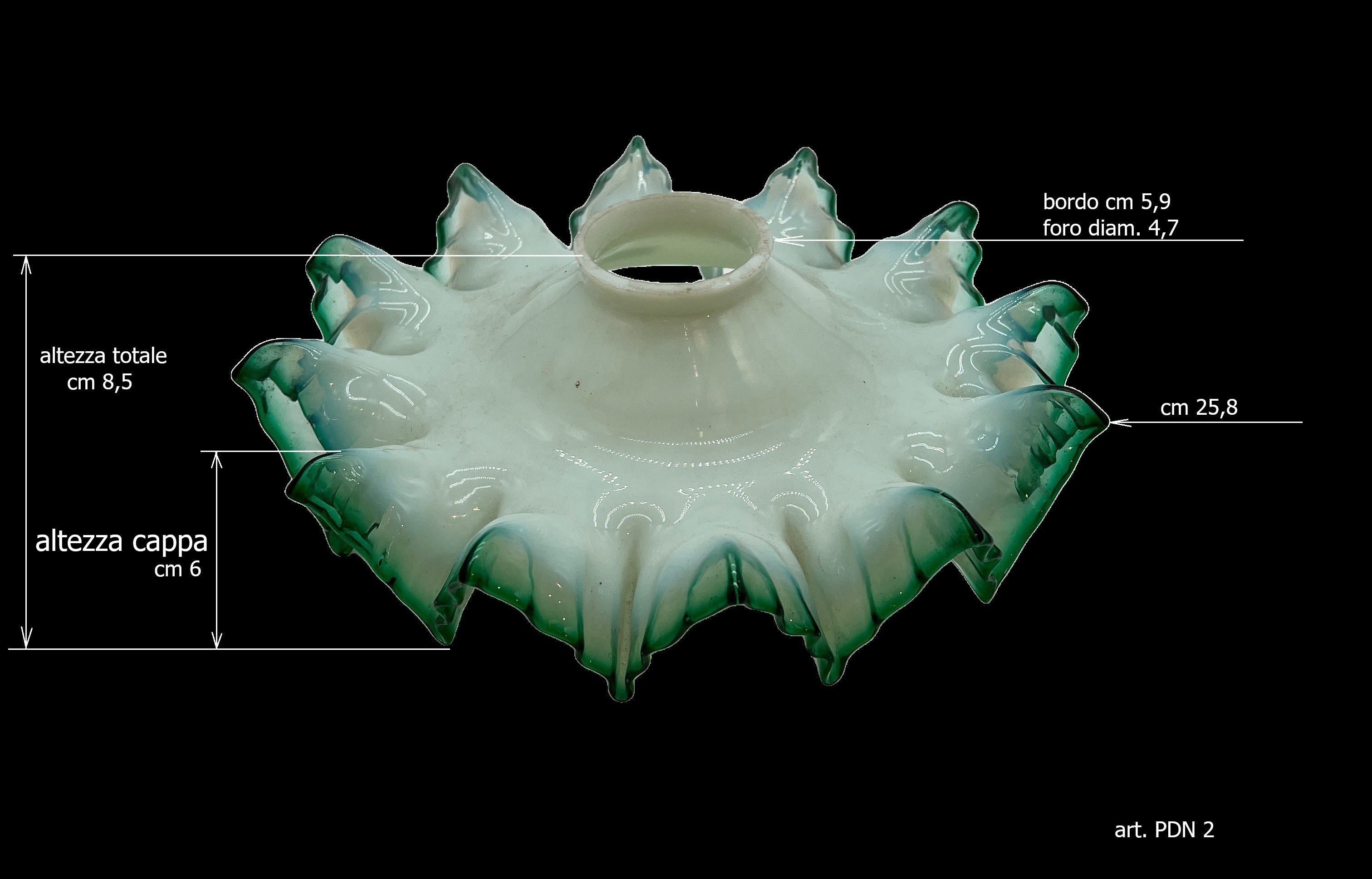 Antique Grandma's Saucer, milky white opaline glass lampshade with antique emerald green border, item PDN 2