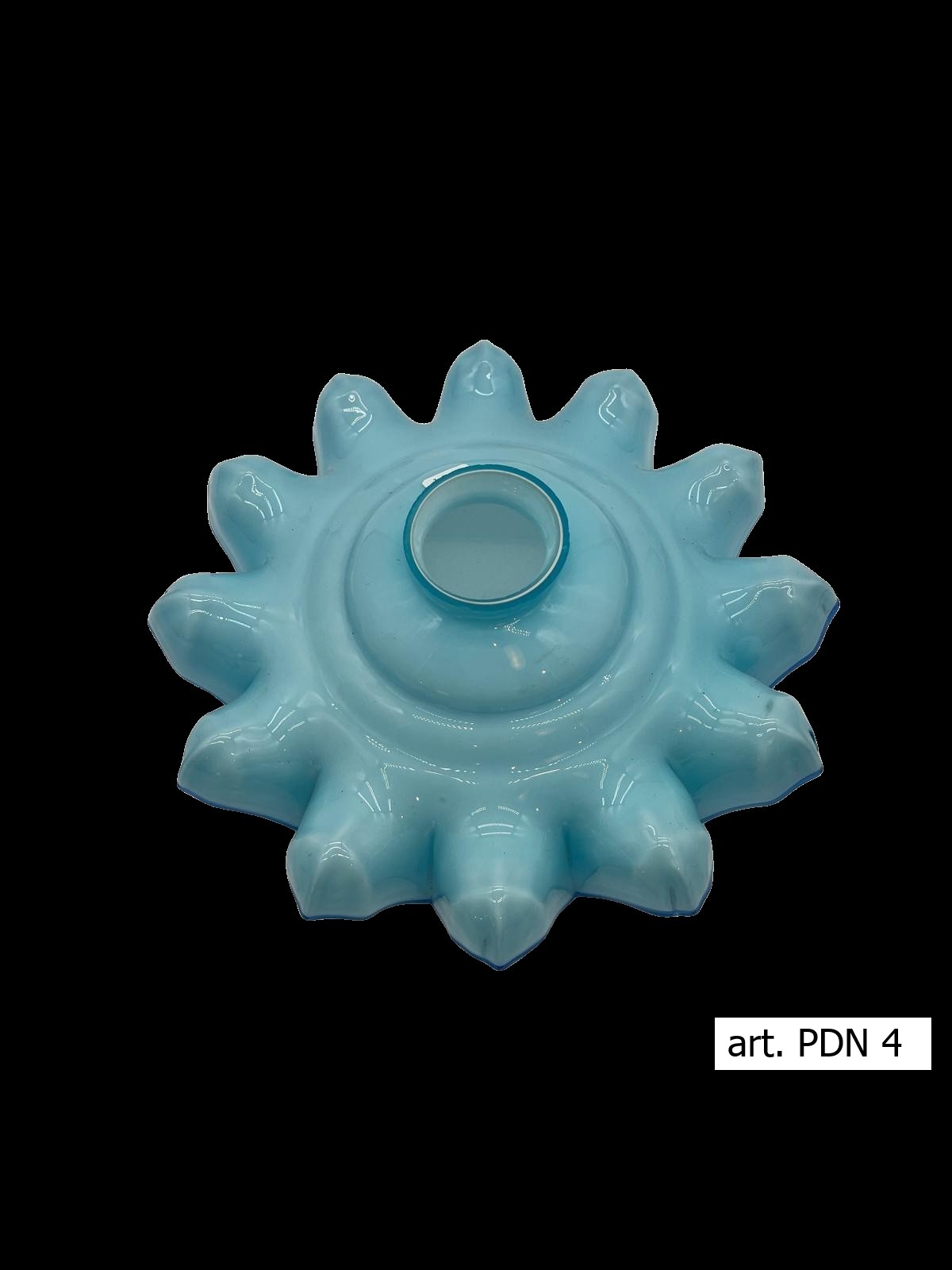 Piattino Della Nonna antico paralume in vetro opalino azzurro cielo e bordo blu cobalto interno incamiciato bianco art. PDN 4
